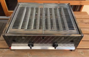 Gehäuse aus Edelstahl, verzinkte Zuleitung, Brennerrohre vernickelt, patentiertes Zündsystem, Flammabdeckung und Fettauffangwanne aus Edelstahl, Grillrost vernickelt, Piezozünder, Thermoüberwachung,