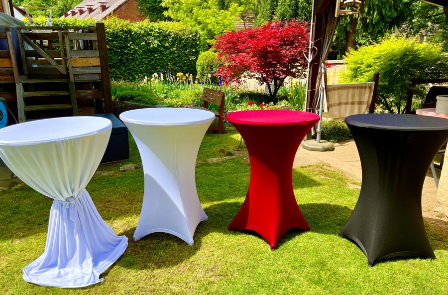 Stehtisch inkl. Stretchhusse (Weiß, Weinrot oder Schwarz)