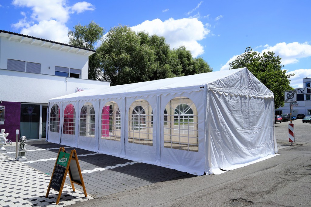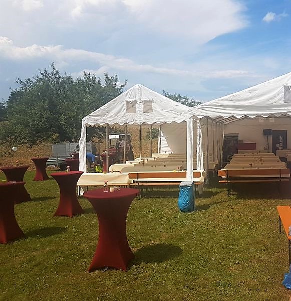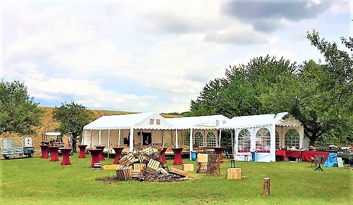 Sie brauchen richtig viel Platz für bis 150 Gäste, Tanzfläche, Buffet, Garderobe oder wollen runde Tische stellen? Dann ist das neue Festzelt mit seinen 6*14m und den großen Fenstern genau die richtige Entscheidung für Ihre Feier.
